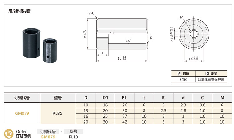 谷茂-尼龙锁模衬套-GM079-PLBS10~PLBS20