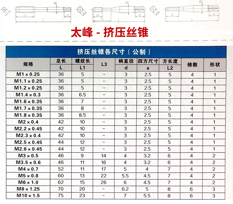 太峰-挤压丝锥-R-STD-M1.0~M6.0...