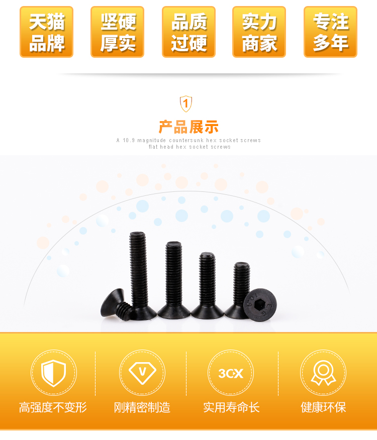 博腾五金-六角螺钉-DIN7991平杯-10.9级内六角沉头螺钉-M10...