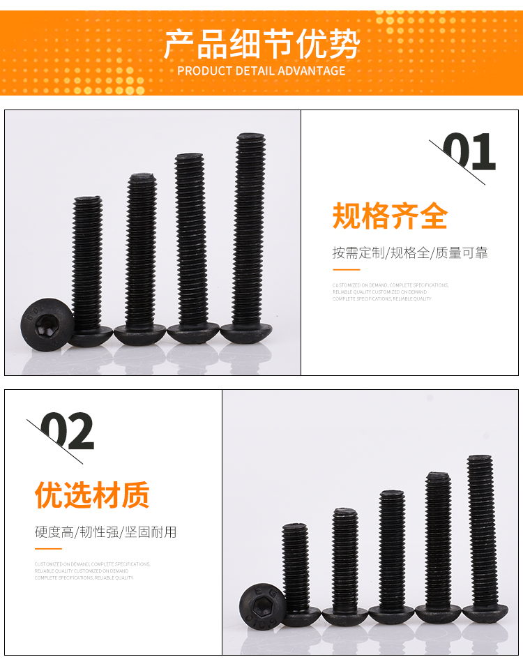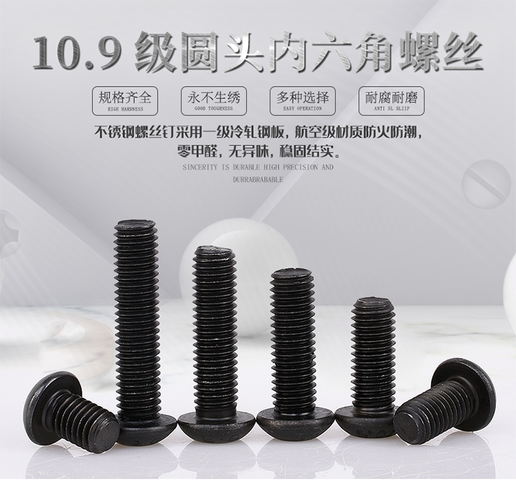 博腾五金-六角螺钉-ISO7380圆杯-10.9级内六角圆头螺钉-M8