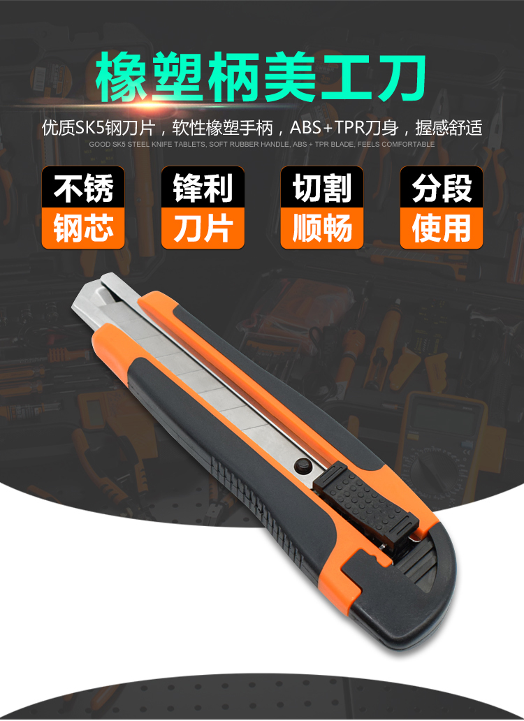 橡塑柄美工刀(ABS+TPR刀身,附一刀片)