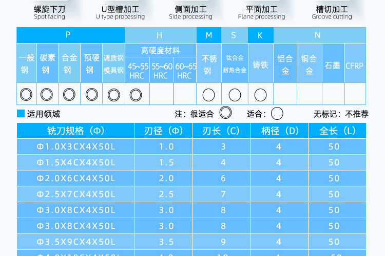 铜、碳素钢、铸铁、模具钢等62°以下材料