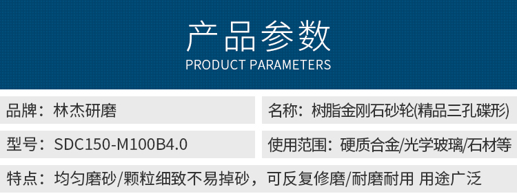 林杰研磨-树脂金刚石砂轮-SDC150-M100B4.0(精品三孔碟形)