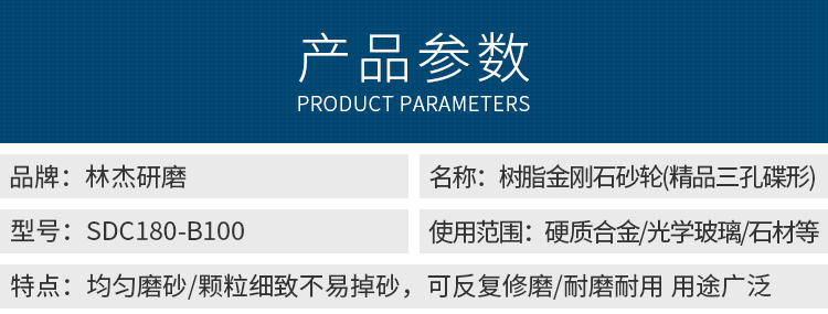 林杰研磨-树脂金刚石砂轮-SDC180-B100(精品三孔碟形)