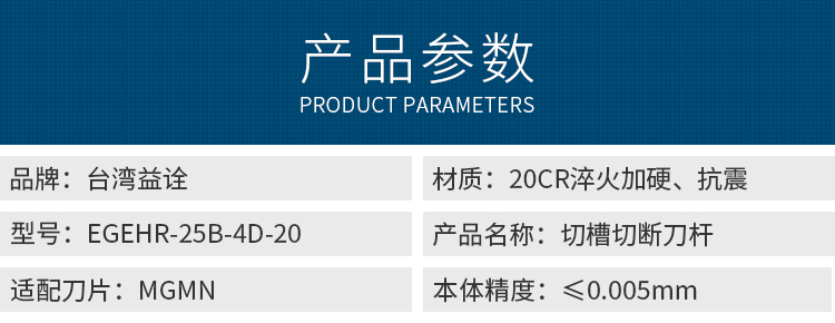 台湾益诠-切槽切断刀杆-EGEHR-25B-4D-20