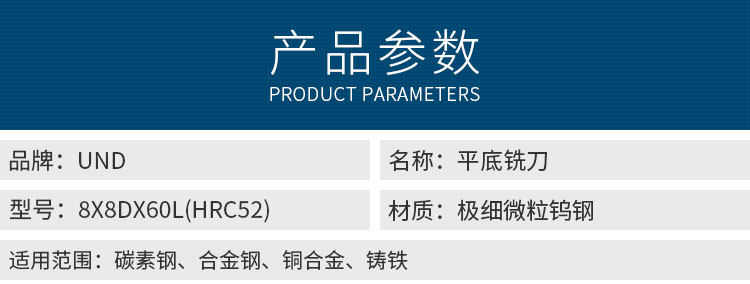 万恒-平底铣刀-8X8DX60L(HRC52)...