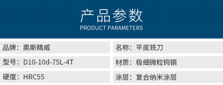 奥斯精威-平底铣刀-D10-10d-75L-4T(HRC55)