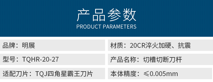明展-切槽切断刀杆-TQHR-20-27(特固克四角星霸王槽刀杆)